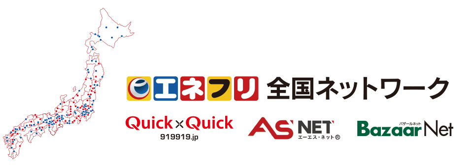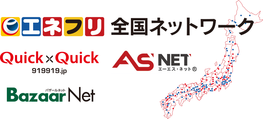 エネフリグループ 300 店舗以上、提携落札店 10 万社以上の自社ネットワークで運営させていただいております。