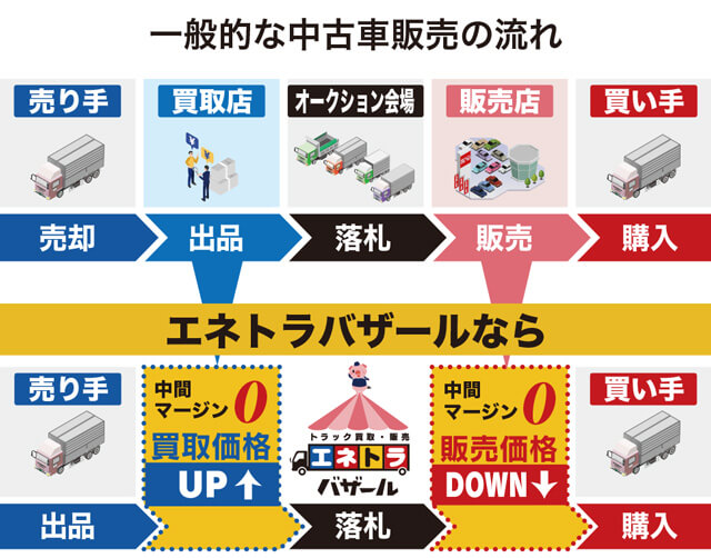 エネトラバザールでは、高品質かつ多種多様な中古トラックをご用意しておりますので、是非お探し下さい。